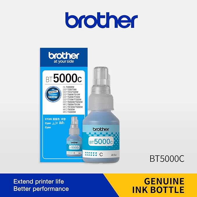 The Brother Genuine Ink Bottle Cyan (BT5000C) is specifically formulated to deliver vibrant and accurate color prints with exceptional clarity. This cyan ink bottle is compatible with a variety of Brother inkjet printers and ensures smooth and reliable printing performance. It is easy to install, allowing for hassle-free refills. With a high page yield, the Brother Genuine Ink Bottle Cyan is perfect for both home and office use, providing professional-grade documents and photos. The ink is designed to prevent clogging and smudging, ensuring long-lasting, high-quality prints.