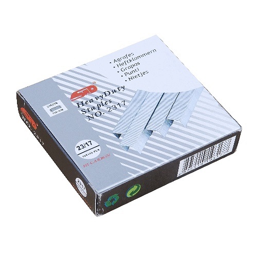STD Staples No. 23/17 are designed for robust and efficient stapling of thicker paper stacks. Each box contains 1000 high-quality staples with a 23mm width and a 17mm leg length. Crafted from durable metal, these staples ensure a strong and consistent hold. They are compatible with staplers that use 23/17 size staples and are suitable for both office and home use. STD Staples offer a professional and reliable finish for all your stapling needs.