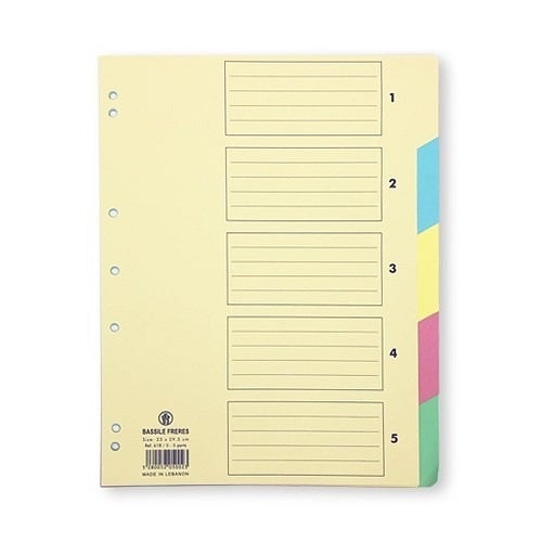 Divider, Bassile Freres, Color Index Separators ,Bristol 180g , A4, 5 Colors