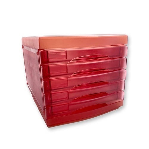 This 5-drawer transparent pink storage organizer provides an efficient and visually appealing solution for keeping your workspace, vanity, or home organized. The vibrant pink drawers make it simple to quickly identify and retrieve the items you need. With its versatile design and smooth-operating drawers, this organizer is an excellent choice for maximizing storage in any room.