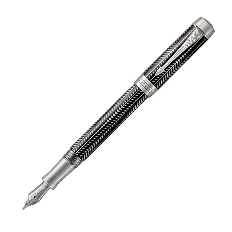 PARKER Duofold Prestige Medium Fountain Pen Black Chevron Chrome Trim