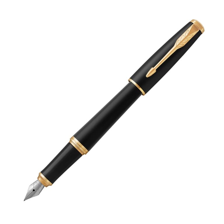 The Parker Urban Premium Fountain Pen blends high performance with bold, contemporary design. Featuring a muted black lacquered barrel with elegant gold trim, it delivers a luxurious look and a smooth, balanced writing experience. Ergonomically shaped to fit comfortably in your hand, it’s the ideal pen for those who appreciate fine writing or are looking for a refined gift.
