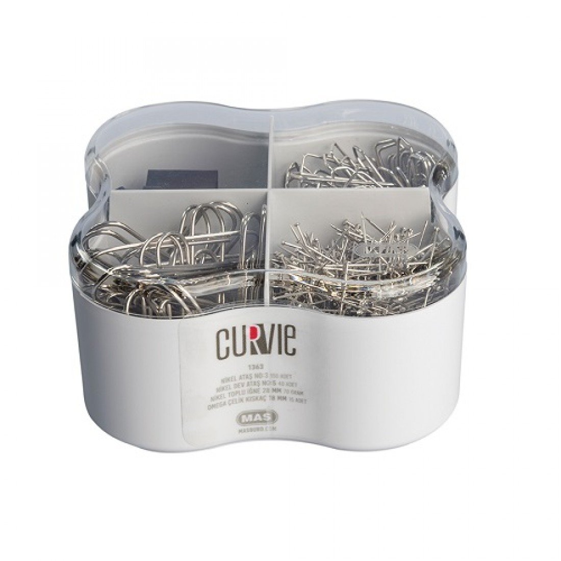 مشابك، ماس، طقم مشابك و دبابيس مكتبية حديد، 4 خانات ،فضي