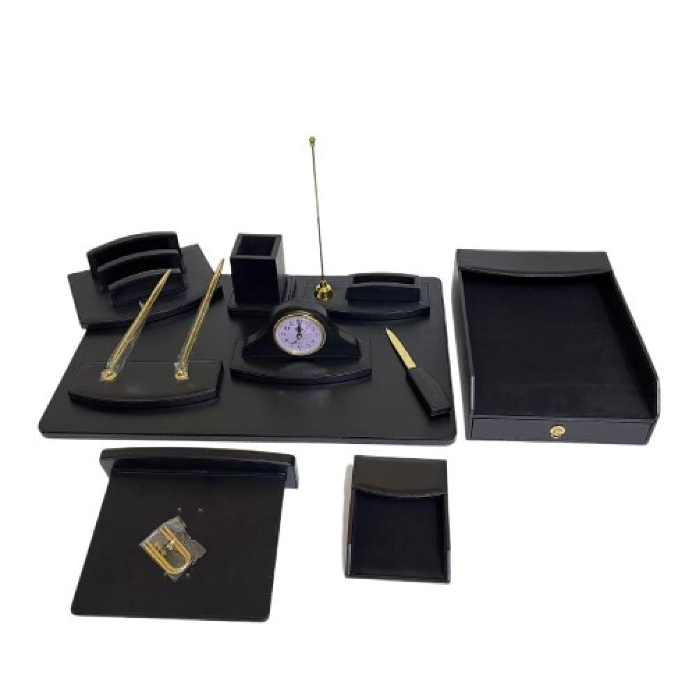 طقم مكتب اسود جلد فاخر 10 قطع كنج ستايل