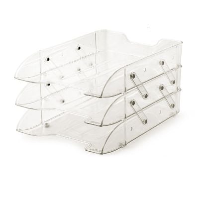 ادوات تنظيم المكتب، ماس، حاوية مستندات مكتبية ، 3 رفوف او طبقات ، بلاستيك، شفاف