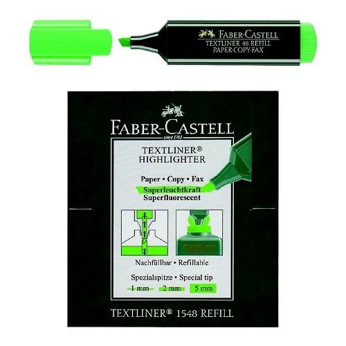قلم تظهير، فابر كاستل، راس مشطوف 1-5 مل، اخضر, 10 أقلام/علبة