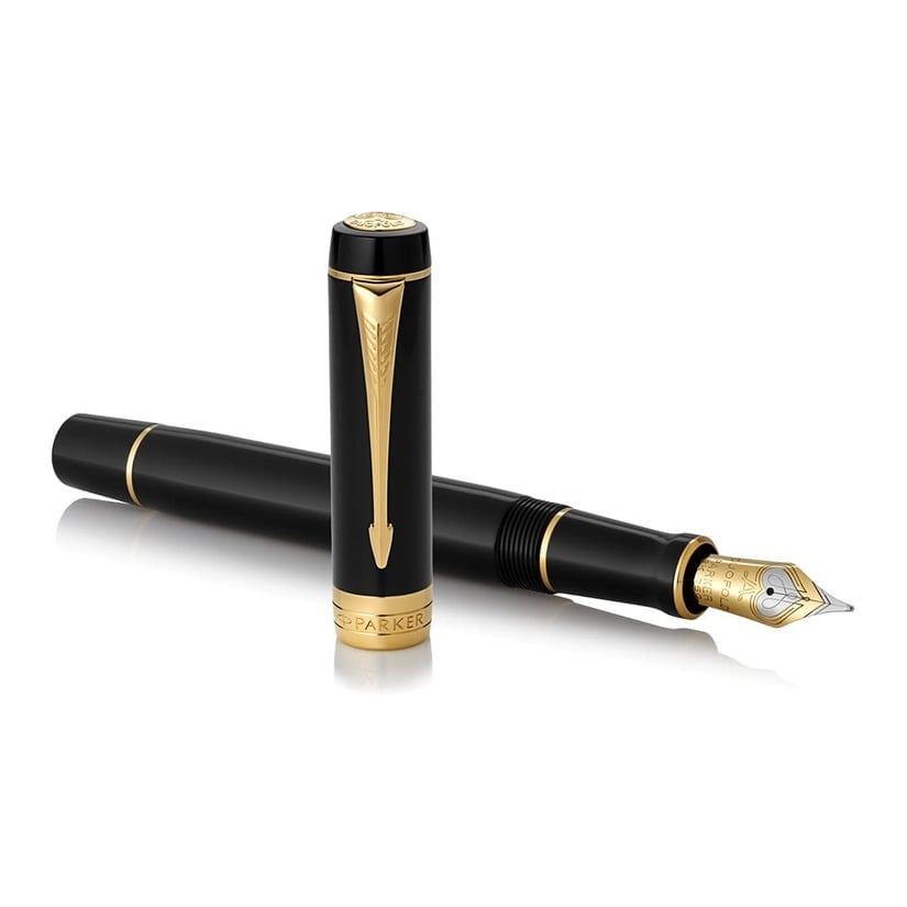 باركر قلم دوفولد كلاسيك اسود بحواف ذهبية سن ريشة متوسط