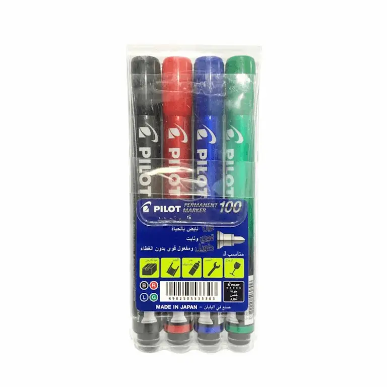 يعتبر طقم ماركر بايلوت الدائم (4 قطع) الحل الأمثل للحصول على كتابة واضحة ودائمة على مختلف الأسطح، بما في ذلك الورق، البلاستيك، المعدن، والكرتون. يتميز بحبر يجف بسرعة، مقاوم للتلطخ، وثابت بمرور الوقت، مما يجعله مثالياً للمكاتب، المدارس، المستودعات، والاستخدامات الصناعية. يوفر الرأس المستدير كتابة سلسة ودقيقة، بينما تمنحك الألوان المتعددة (أسود، أزرق، أحمر، وأخضر) خيارات متنوعة لمهام مختلفة. هذا الطقم المكون من 4 قطع مثالي للمحترفين والمعلمين والمبدعين الذين يبحثون عن ماركرات عالية الجودة وموثوقة.