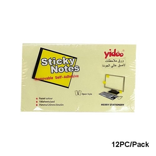 ورق ملاحظات، يادو، ورق لاصق للملاحظات، (75x 125 مم)، 100 ورقة/حبة، اصفر، 12 حبة/ علبة