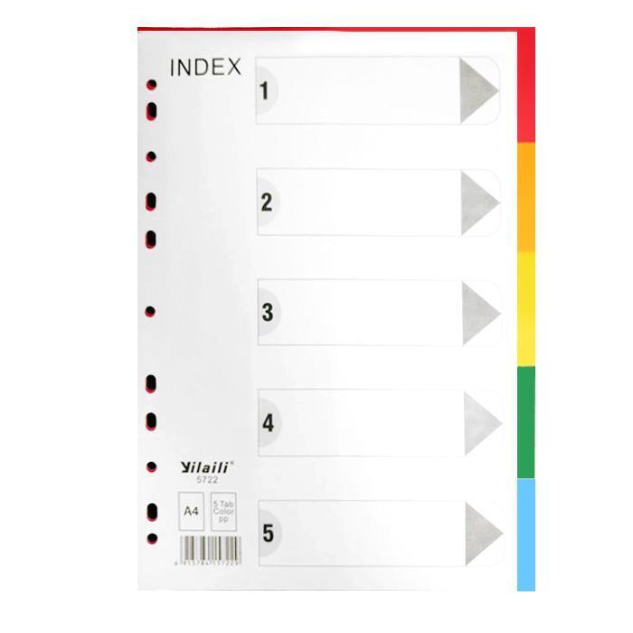 عزز تنظيمك وإنتاجيتك مع فاصل الفهرسة المصنوع من البي في سي. مصمم بشكل مثالي للمستندات بحجم A4، ويتميز بعلامات تبويب 1-5 لتصنيف سهل ومتانة للاستخدام اليومي